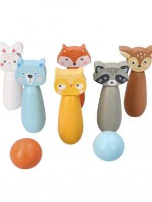 Kegelspiel – komplettes Bowling Set mit 6 Kegeln und 2 Bällen: Die Kegel und Bälle sind ganz aus lackiertem Holz, präzise gefertigt und in lebhaften, angenehmen Farben bemalt. Ideal, um Kinder zum Spielen zu animieren. Jeder Kegel stellt ein anderes Waldtier dar: Fuchs, Bär, Waschbär, Reh, Eule, Hase. Die Kegel können als Regaldekoration im Kinderzimmer…